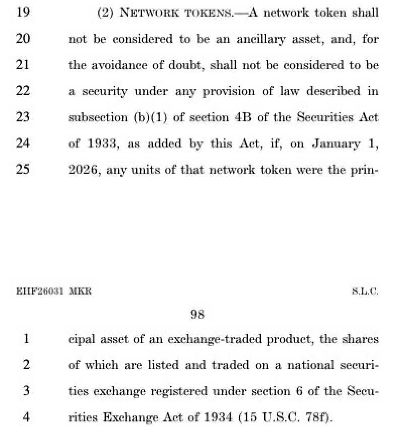 🇺🇸 The latest draft of the CLARITY Act would grant coins like XRP, Solana and Dogecoin the same legal status as Bitcoin by classifying them as non-ancillary assets exempt from SEC securities rules if they were in an ETP by Jan. 1.