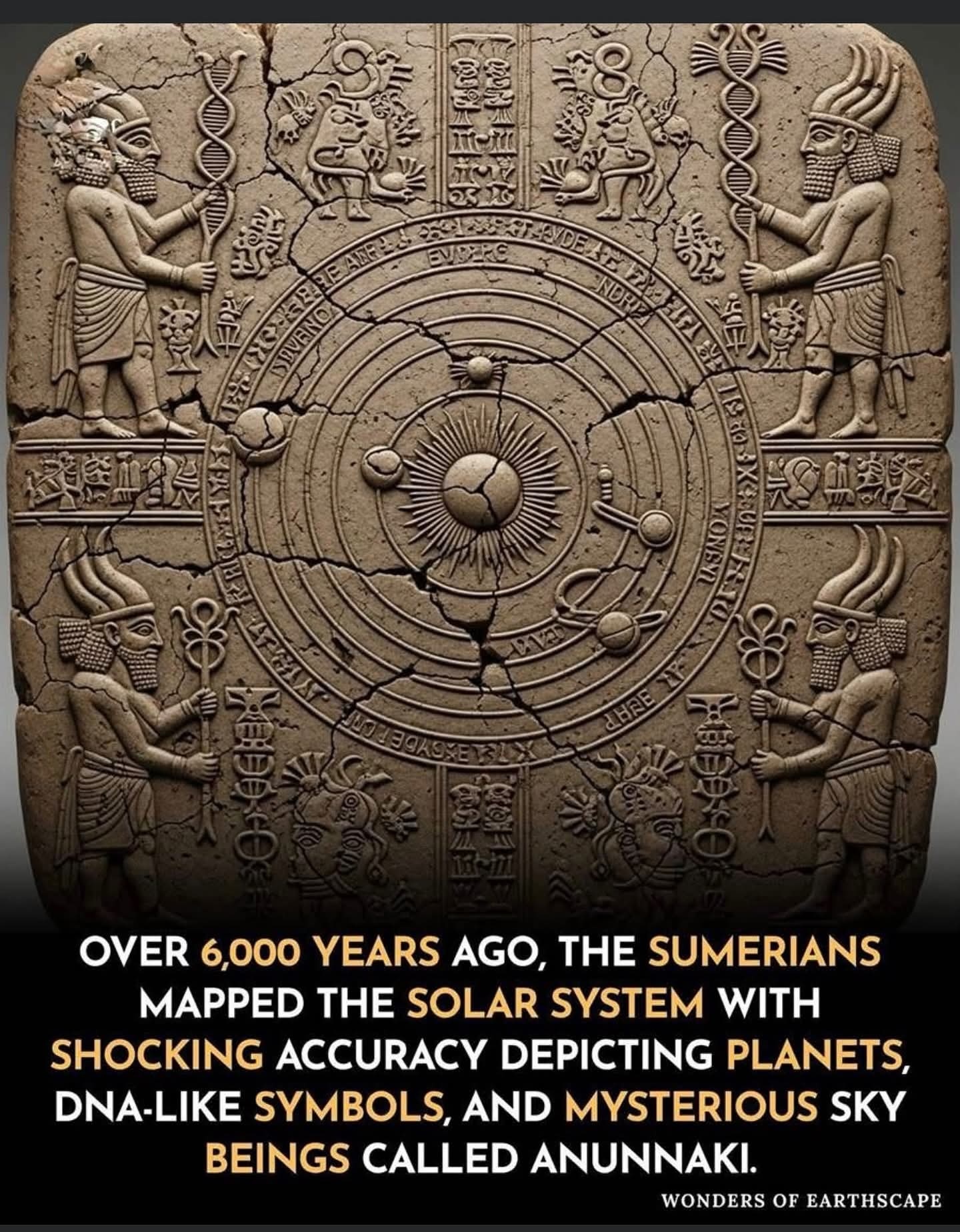 From Gala1sha__ on FB - “The ancient Sumerians of Mesopotamia, often credited as the world’s first advanced civilization, left behind clay tablets that continue to baffle modern scholars. Among these are intricate celestial diagrams some over 6,000 years old that depict a heliocentric solar system, showing planets like Jupiter, Saturn, and even distant Neptune orbiting the sun.