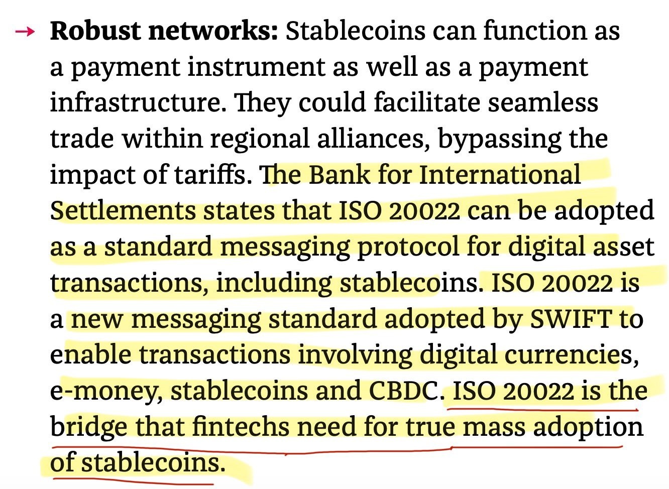 “The Bank for International Settlements states that ISO 20022 can be adopted as a standard messaging protocol for digital asset transactions, including stablecoins.”✅