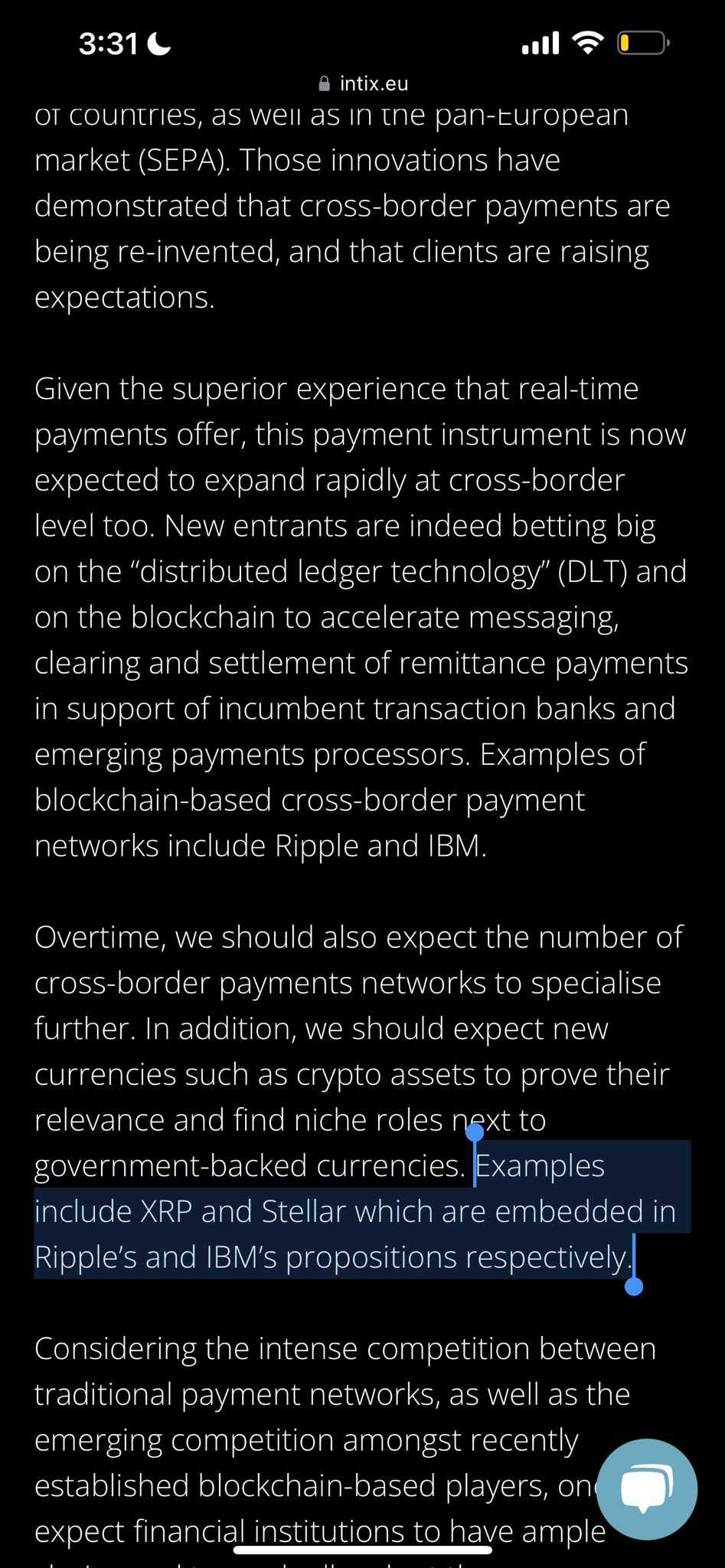 “Overtime, we should also expect the number of cross-border payments networks to specialise further. In addition, we should expect new currencies such as crypto assets to prove their relevance and find niche roles next to government-backed currencies. Examples include XRP and Stellar which are embedded in Ripple's and IBM's propositions respectively.”✅