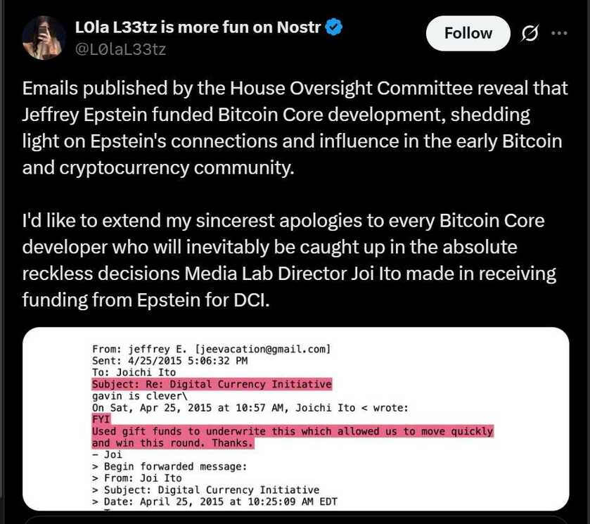 Newly unsealed emails from the House Oversight Committee have shed fresh light on Jeffrey Epstein’s hidden financial influence inside MIT’s Media Lab — and more importantly, how some of that money flowed into Bitcoin Core development. The correspondence reveals that Joichi Ito, then-director of the MIT Media Lab, relied on Epstein-connected “gift funds” to rapidly launch the Digital Currency Initiative (DCI) in 2015, the research hub that became one of the primary sources of funding for Bitcoin’s core developers.