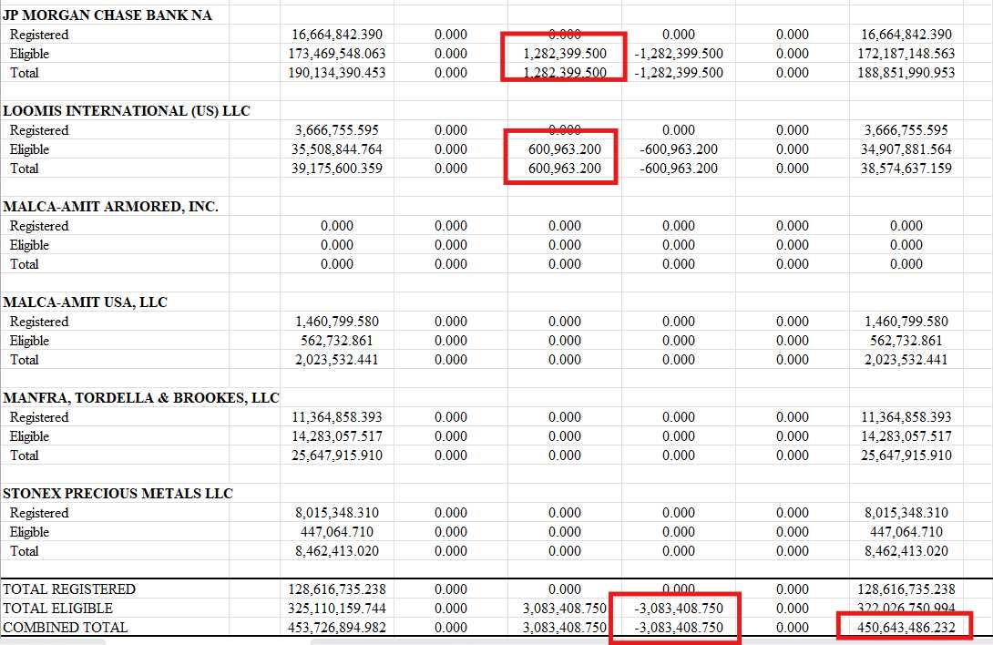 🚹4 Large Withdrawals Combined to Remove 3,083,408 oz of #Silver From COMEX Vaults!