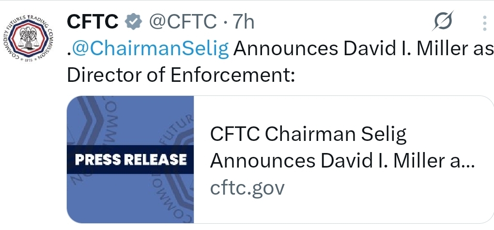 Chairman Michael S. Selig Announces David I. Miller as Director of Enforcement For The CFTC🏛