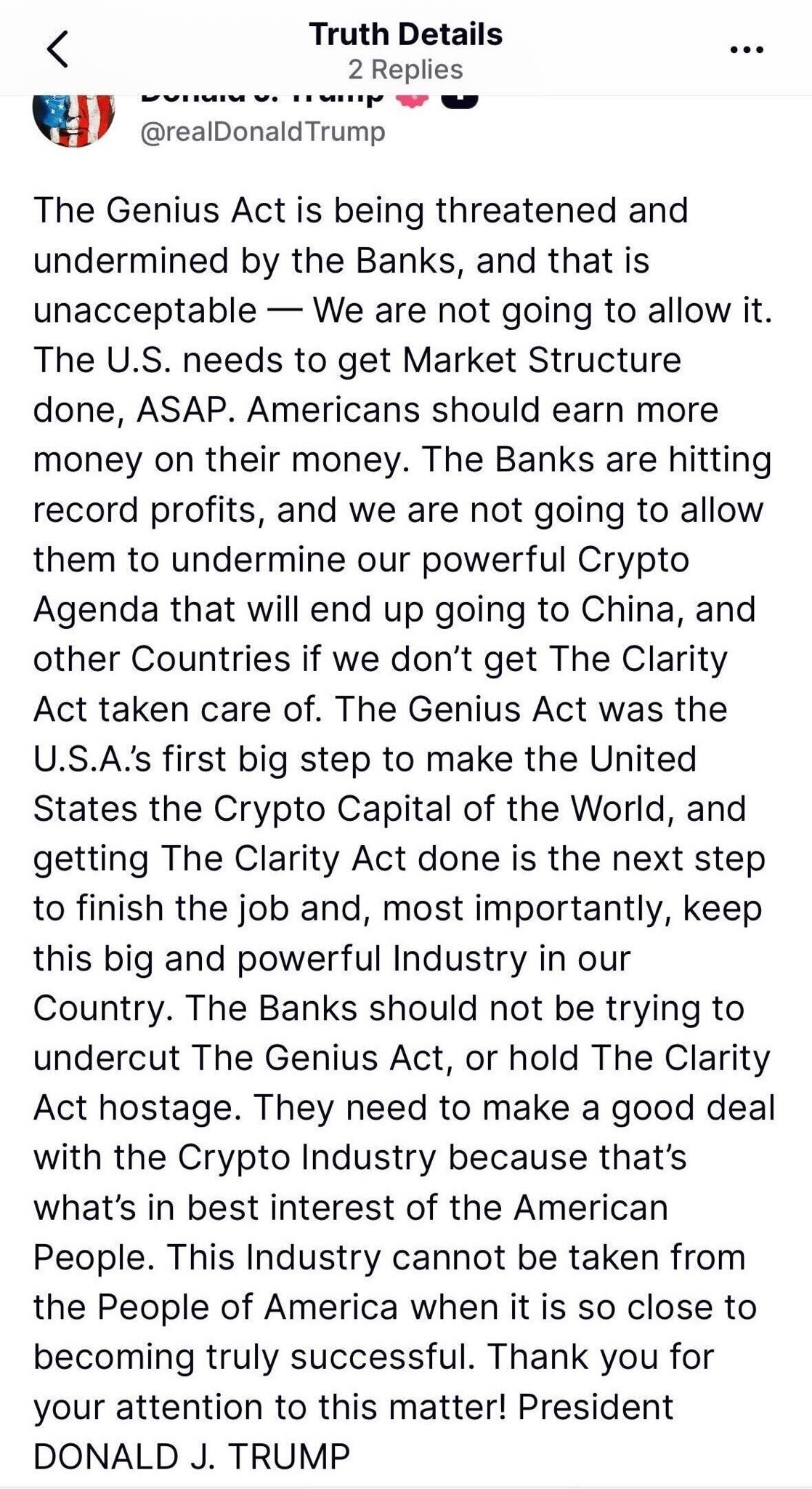 An extremely pointed message from @POTUS to those who are dragging their feet on CLARITY.