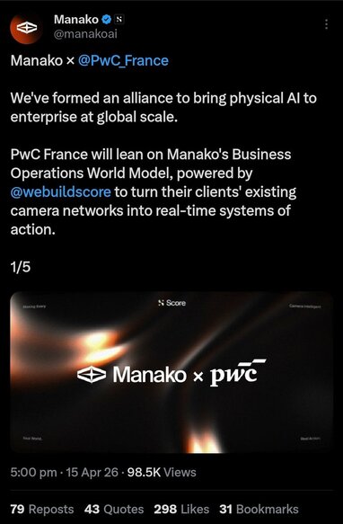 Around the same time, @PwC_France & Maghreb announced a strategic alliance to integrate Manako’s Business Operations World Model into its AI and digital advisory practice. PwC isn’t some small crypto-friendly firm. They are a $57B revenue global giant serving 82% of the Fortune Global 500. Reports indicate they spent months on technical and legal due diligence before deciding to move forward with deployment opportunities across retail, manufacturing, logistics, energy, and infrastructure.